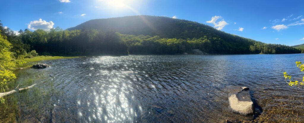 Up and over Baker Mountain, crossed Big Branch Creek and followed tributaries all the way to Little Rock Pond. A large mountain pond with good shore access and adjacent shelter and tenting site. I had the whole place to myself. Tempted to go for a swim but still a bit cool.
