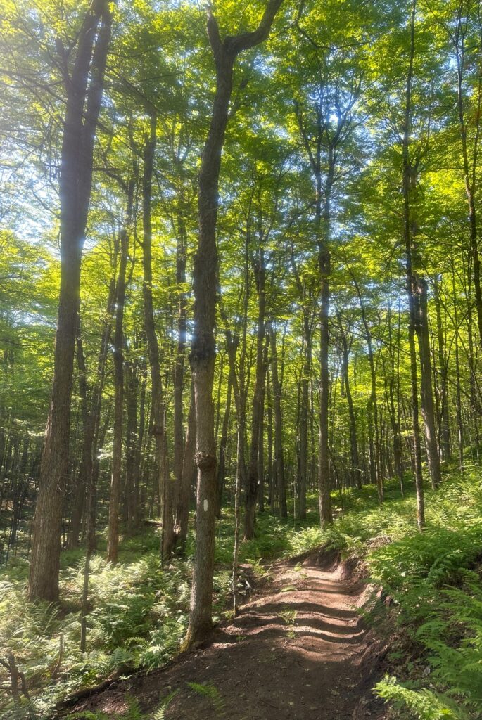 A mix of town and country today. Out of the forest this morning into a rural area with farms, some with sheep, and large properties. Further on, I saw a string of small diameter tubing wrapped around and connecting several trees. Saw this a few other times in VT, wow, these are maple trees! Wouldn’t it be great to tap into the tube and drink pure maple syrup. If only it was that easy!