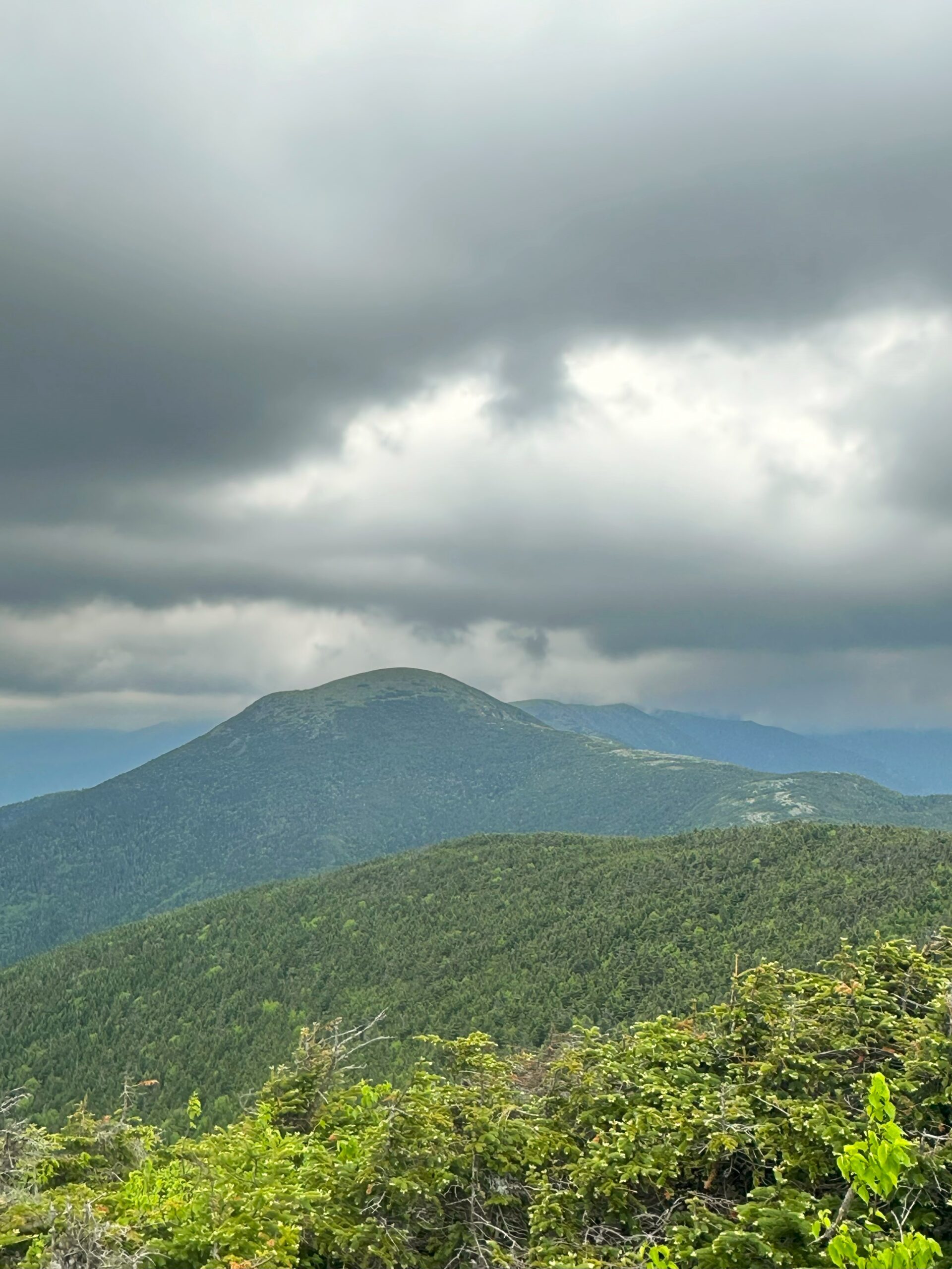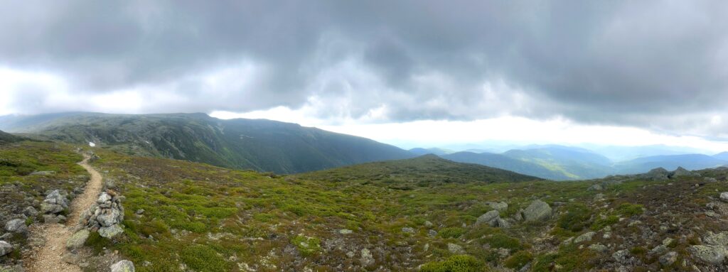On a mostly overcast day, I skirted around Mt Eisenhower and Mt Monroe on the way to the hut with the much taller Mt Washington still shrouded in mist.