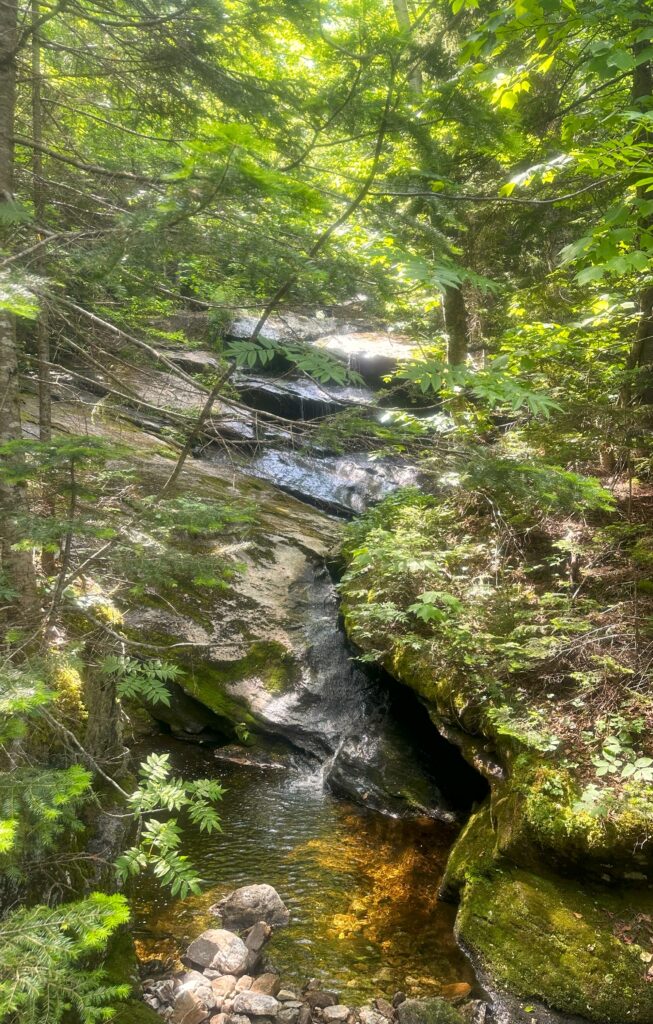I set up my tent just a bit further along at Hall Mountain Lean-to. Better late than never – just a few sprinkles. I’ve mentioned the green tunnel and how it can’t get any greener. Hard to believe but it actually has for the past few weeks. The green moss on the rocks and trees add even more shades of green.
