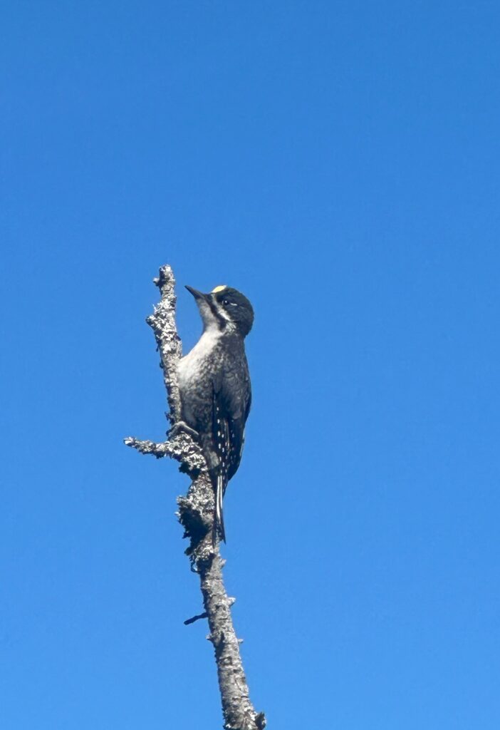 Saw my first and probably last snake in Maine today sunning himself on a rock. New birds today: Blue-headed Vireo and a Black-backed Woodpecker.