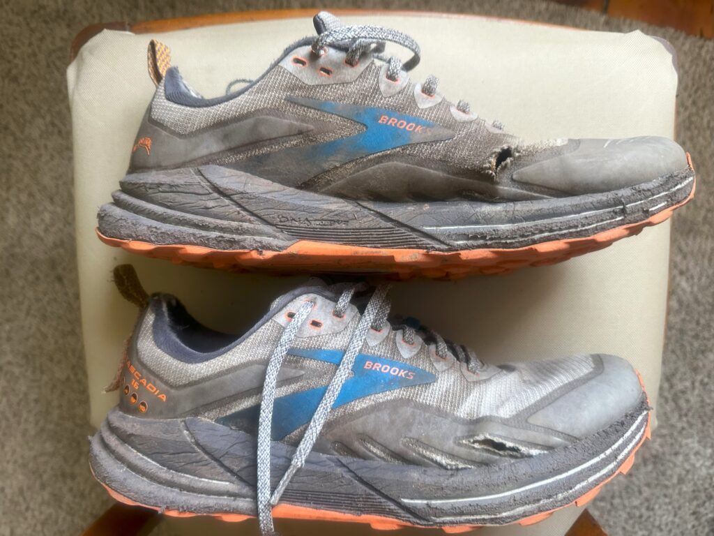 Zack at the Inn is also the postmaster so at the end of his 2-hr shift today, he hand-delivered my resupply box. Sure happy to get my new, long awaited Brooks Cascadia shoes. My old pair were filthy, full of holes, cut up, soles flattened and a peculiar, somewhat embarrassing odor. This new pair will definitely get me to the end.