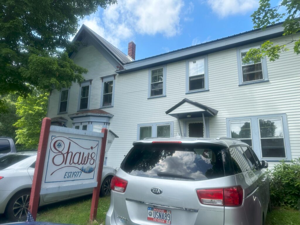 So happy to finally arrive at the crossing and road to Monson ME on the shore of Lake Hebron. I went straight to the Country Store, ordered a big sandwich and cold drink and collapsed into a chair under a big ceiling fan. Somewhat cooled off, I picked up my last resupply box from the PO and checked into nearby Shaw’s Hiker Hostel. A reunion of sorts seeing Stella, Photos, Captain Jack, and Oadie. I met Poet and Hippy Chick, the hostel owners, and checked out their small but well-stocked gear room.