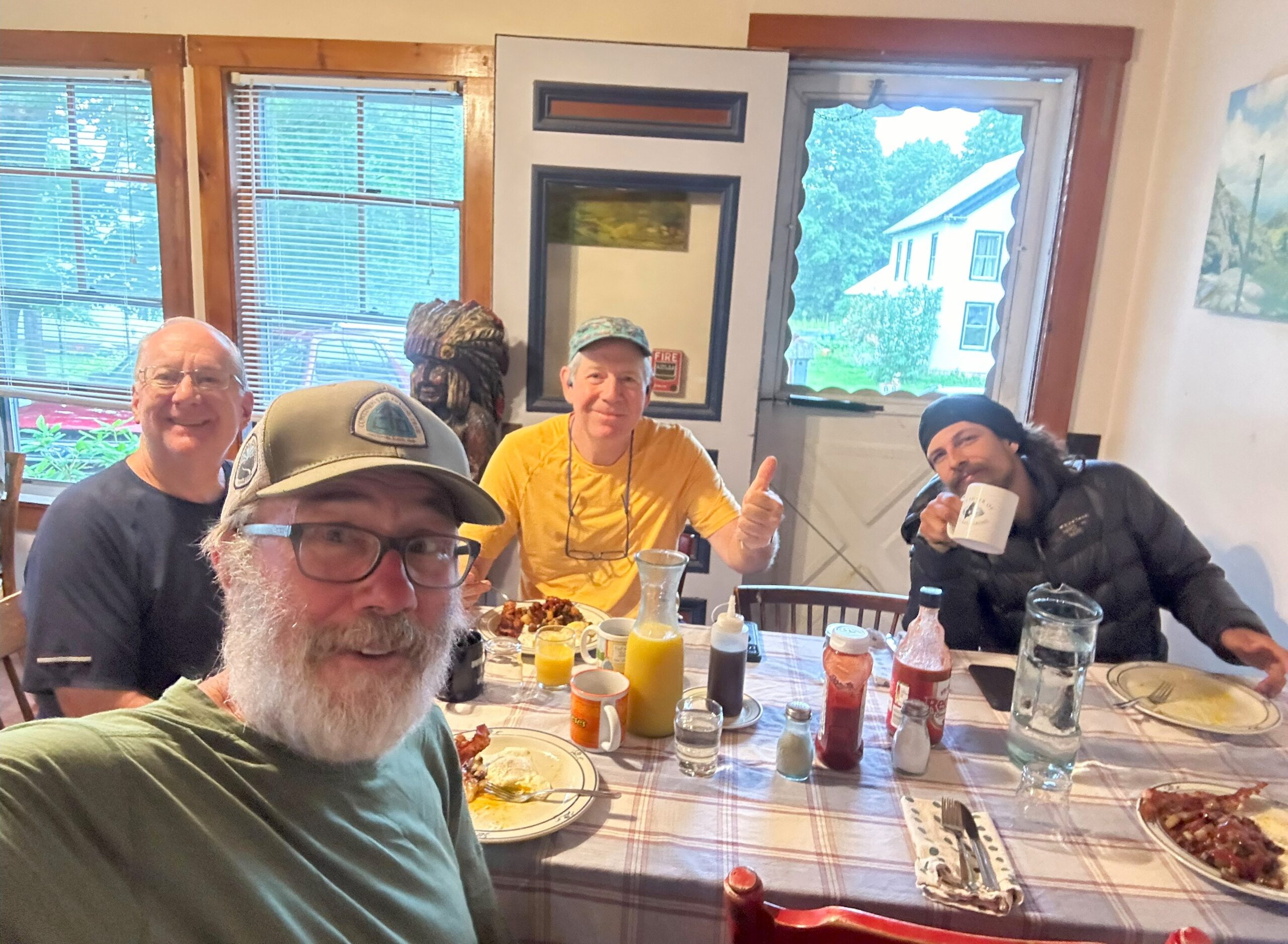 It didn’t seem very patriotic to be hiking out today. Besides, I thought an extra day’s rest would be helpful before the 100-Mile Wilderness. The big pancake breakfast at Shaw’s is so good and extra special. I think it’s because of the three eggs, bacon and potatoes before the pancakes even arrive! No need for lunch after that feast.