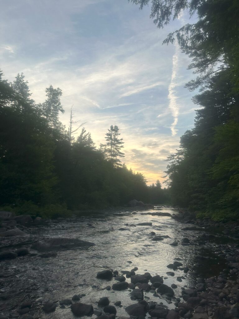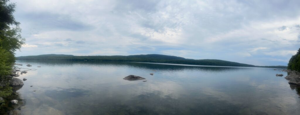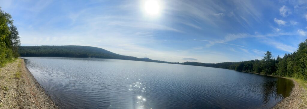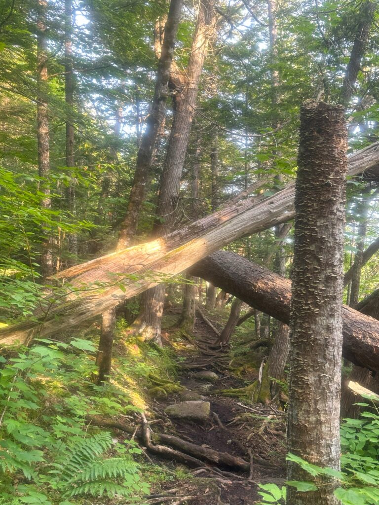 This morning I followed the Nahkamata Stream and then Nahkamata Lake for six miles. Green mossy rocks, green mossy trees and pretty water views – but so hot and humid.