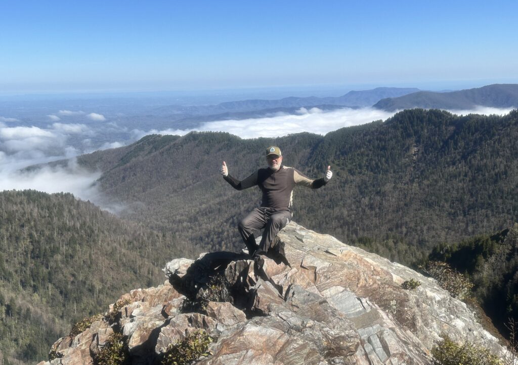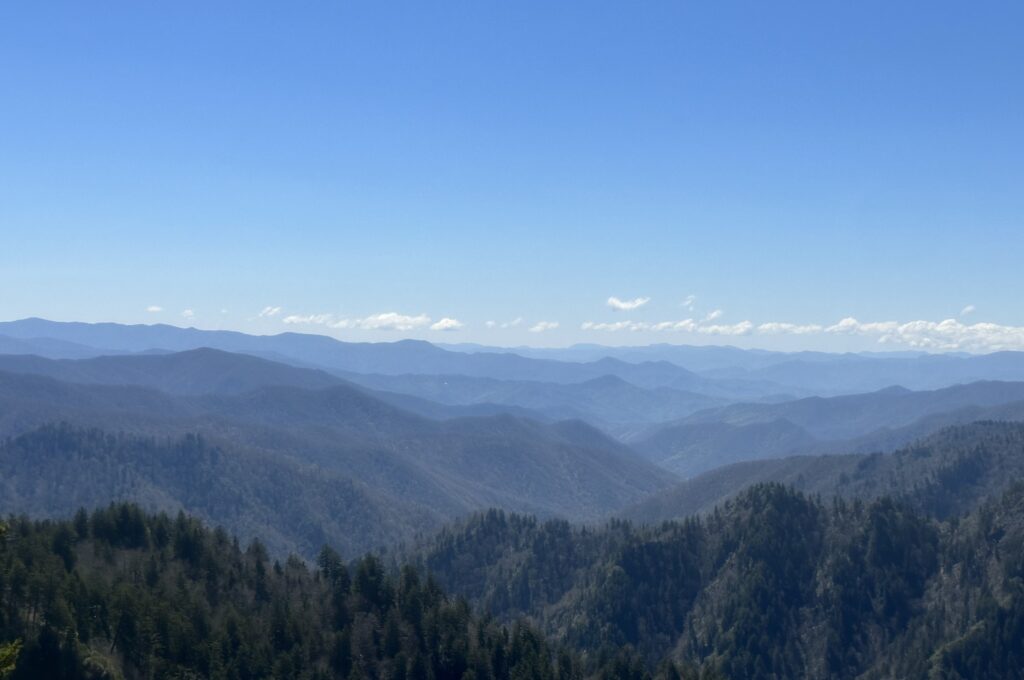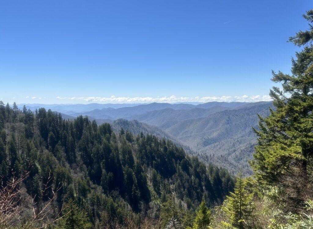 Expansive views of the Smokies, especially from Charlies Bunion, many low-lying clouds far below, left over from the passing storm.