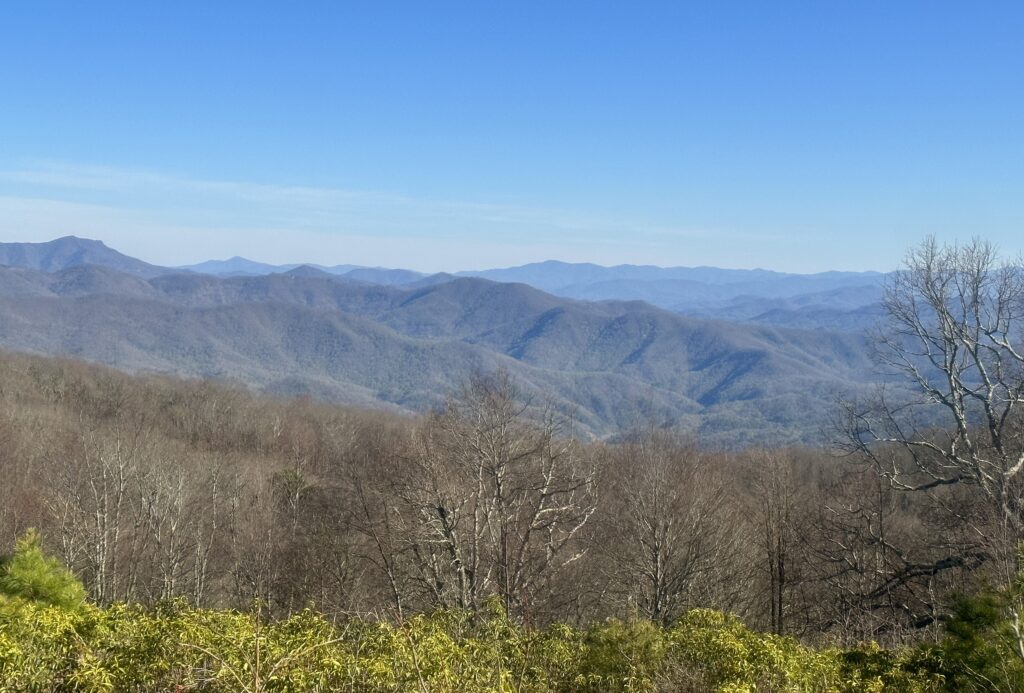 Still a really nice hike down through different vegetation zones with glimpses and silhouettes of the Smokies through the trees.