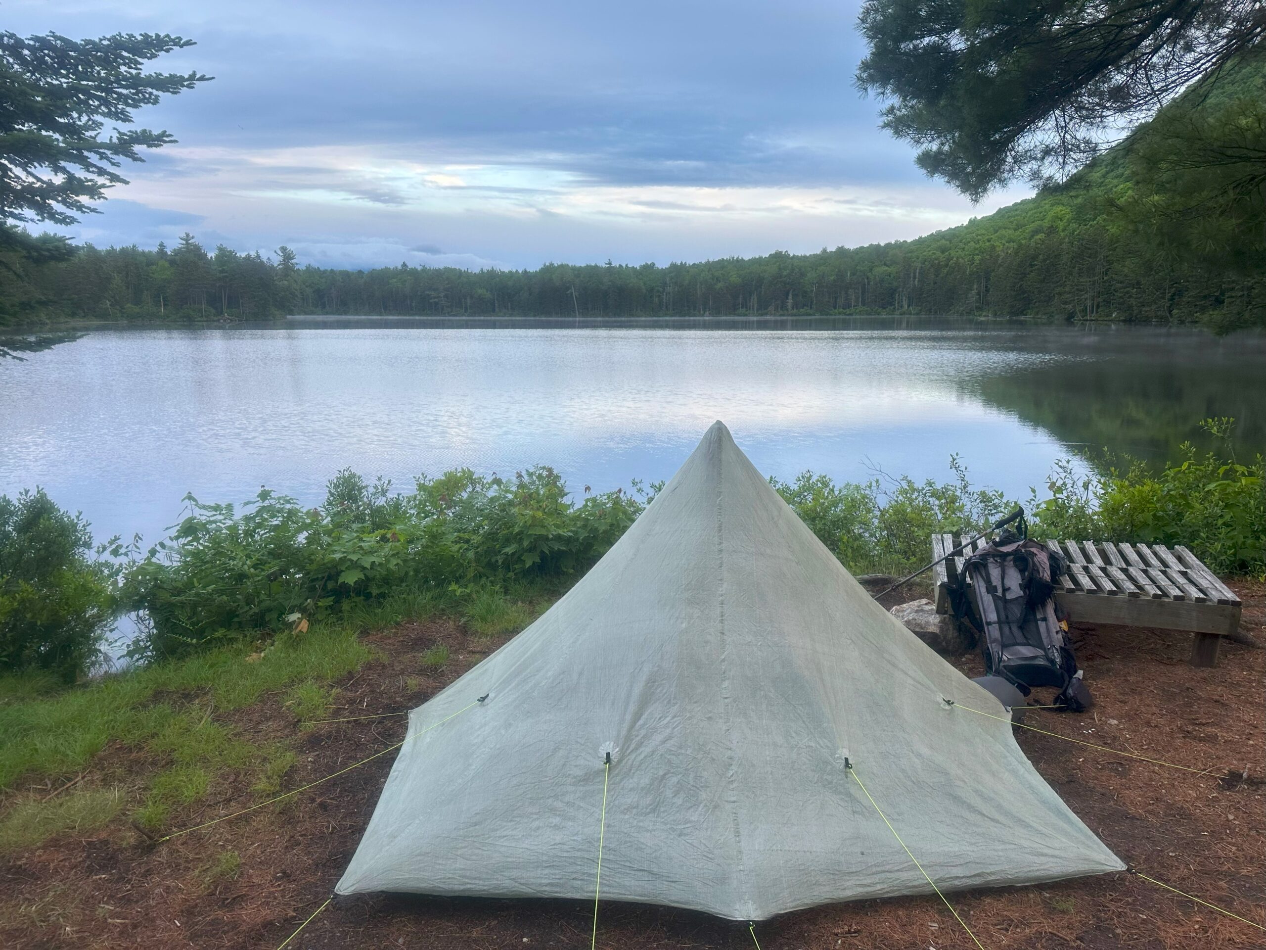 As nice as it was camping next to Wachipauka Pond, the croaking frogs were so noisy I had to put earplugs in. I’m also happy to report that my sticks for tent stakes held up but I will be looking for replacements in Lincoln.