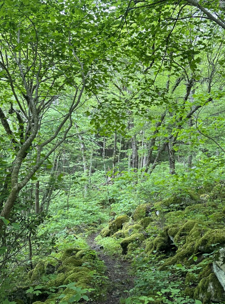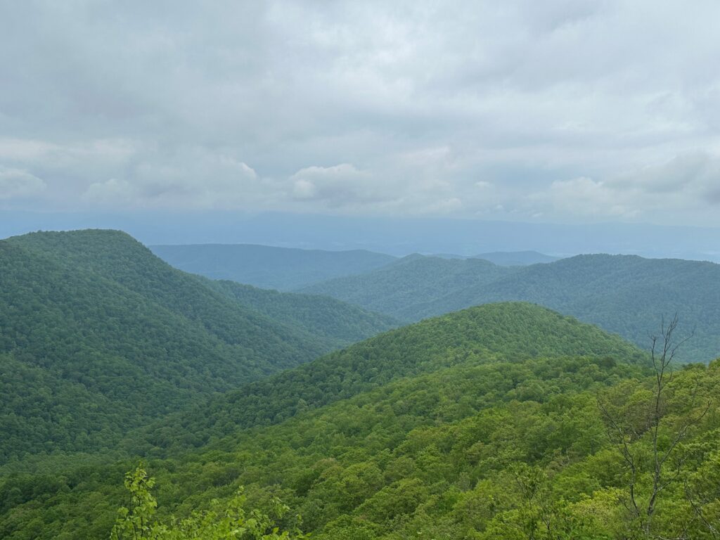 Close to a 7,000″ vertical gain today following the ridgetops up and down. Much of it was again parallel to the Blue Ridge Parkway. Mostly cloudy but the sun did come out for a while this afternoon.