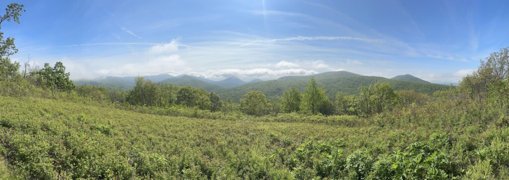 One of the better sleeps on the trail last night. On the trail by 6:30am and resumed the climb started yesterday afternoon. Got to a high point for the day at Bald Knob and it was fogged in with no views. The heavy mist lifted up in time and got some nice views at the next high point at Cole Mountain.