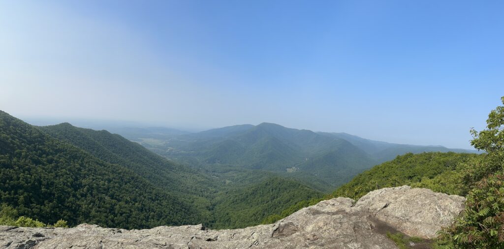 If I had to do 3,000′ of vertical, I’d rather do it first thing in the morning and I got my wish. The high point at Three Ridges Peak was heavily wooded so the views were filtered. Much better views of the nearby valleys and mountains on the way down at Hanging Rock Overlook.