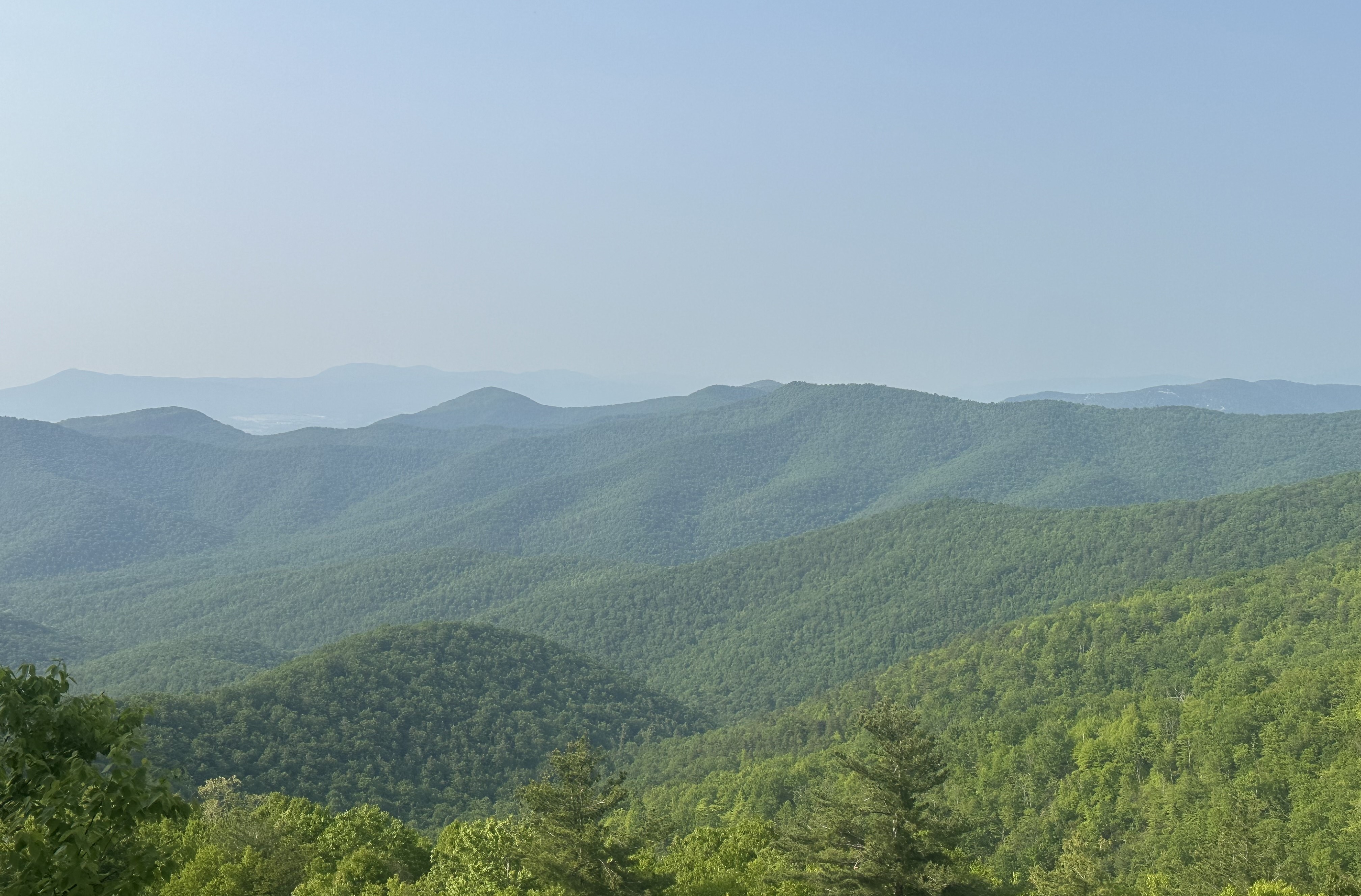 This was a great day on the trail with more gently gradients, good tread and nice forest scenery with some views of the Shenandoahs. Still some ups and downs but a lot of cruising too.