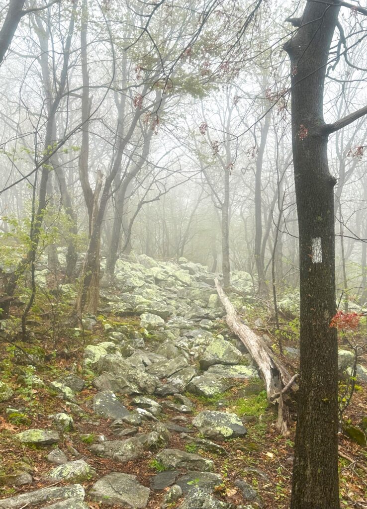 I woke up to a cooler, overcast, misty, and drizzly morning and it stayed that way the whole day. I left camp about 7am and quickly arrived at the Washington Monument State Park and refilled water bottles. I made a short detour to the monument itself, a stone obelisk built in 1827. This was nearly 60 yrs before the more famous monument in D.C. I would have had good views there if not so socked in.