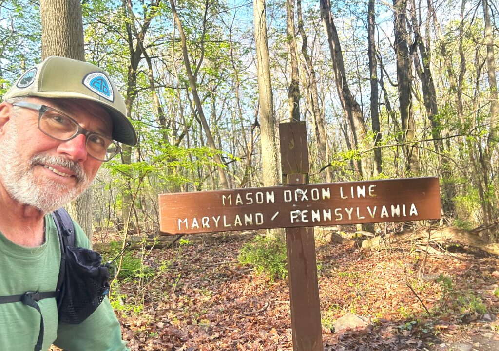 Light rain off and on all night but clearing skies in the morning. Mostly downhill off the rocky ledges to Pen Mar Park and shortly thereafter, the Mason-Dixon Line and the Maryland- Pennsylvania border.