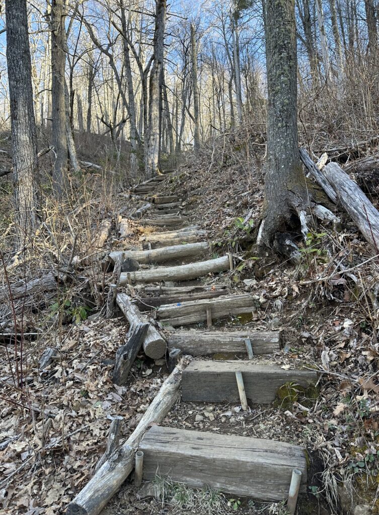 Pretty hike this morning mostly on ridgelines before dropping down to Winding Stairs Gap.
