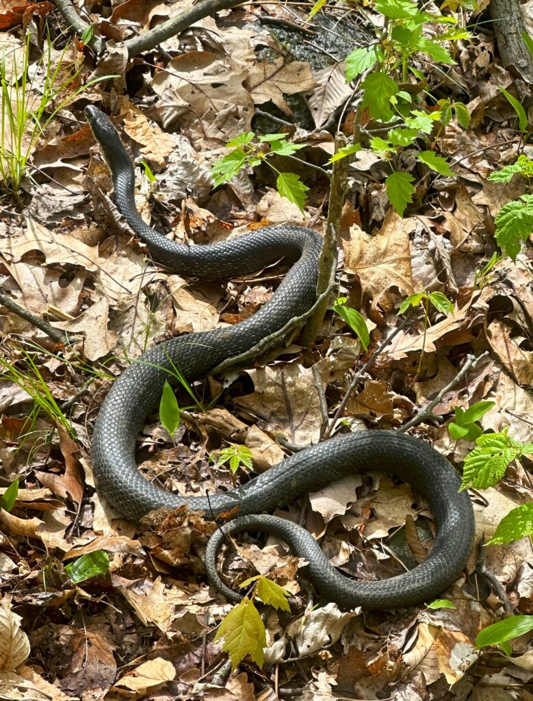 Had lunch and chatted with a southbound hiker at the Mashipacong Shelter. No spring but there was a water cache in the bear box. I had earlier seen another rat snake on the trail plus this shelter had two resident rat snakes crawling along the backwall. Keeping those rodents under control. Later, two large piles of bear scat on the trail put me on high alert for a few miles.