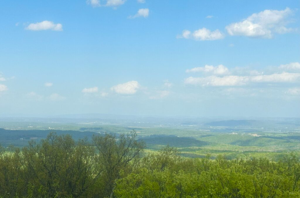 I soon left Delaware Water Gap Recreation Area but stayed on the high ridge for the most part. The rocks on the trail were slicker than snot after rain most of the morning. As it partially cleared and warmed up, tiny gnats came out in full force. Not biting but very annoying – flying into my mouth, up my nose, into my ears and even walking across my eyeballs. Wishing for a stiff breeze.