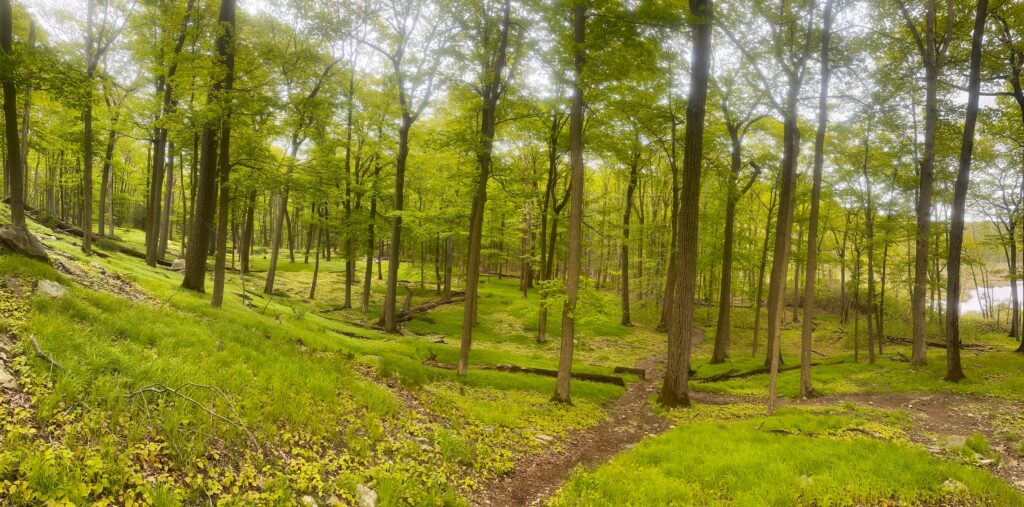 Jim from Lake Lodging took me back to the TH off NT State Route 17A. A light but steady rain for about the first four hours of hiking – careful footing required. Under the green canopy today, made even greener by tall green grass and green ground cover. Couldn’t see much at the viewpoints early in the day due to weather but I did pass some nice waterfalls and small lakes. I met and passed the hikers I had dinner with in Greenwood Lake just before lunch at Elk Park.