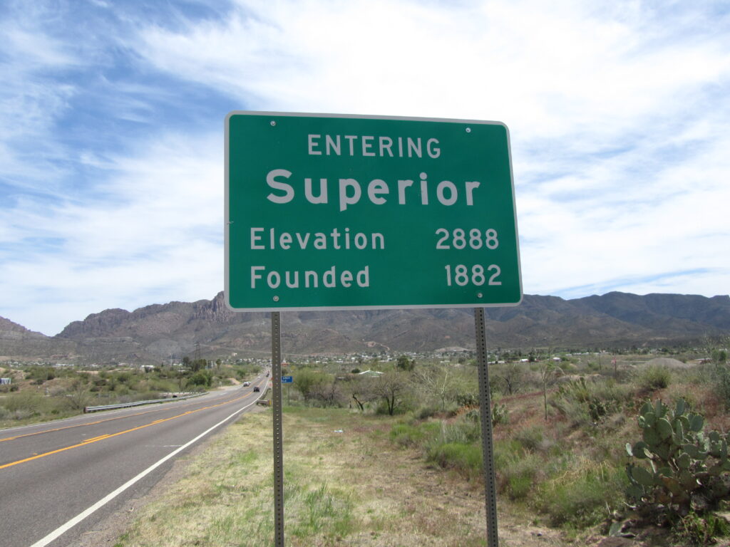 Walked the HWY60 into Superior and had good Mexican food at Los Hermanos. I had last been there when I worked for a summer at the No. 9 shaft Magma underground copper mine while going to the University of Arizona many years ago. I remembered my brother visiting me in Superior and he was very impressed with a bar fight at Los Hermanos. We witnessed the brawl up close and personal while having a few beers at the bar there.