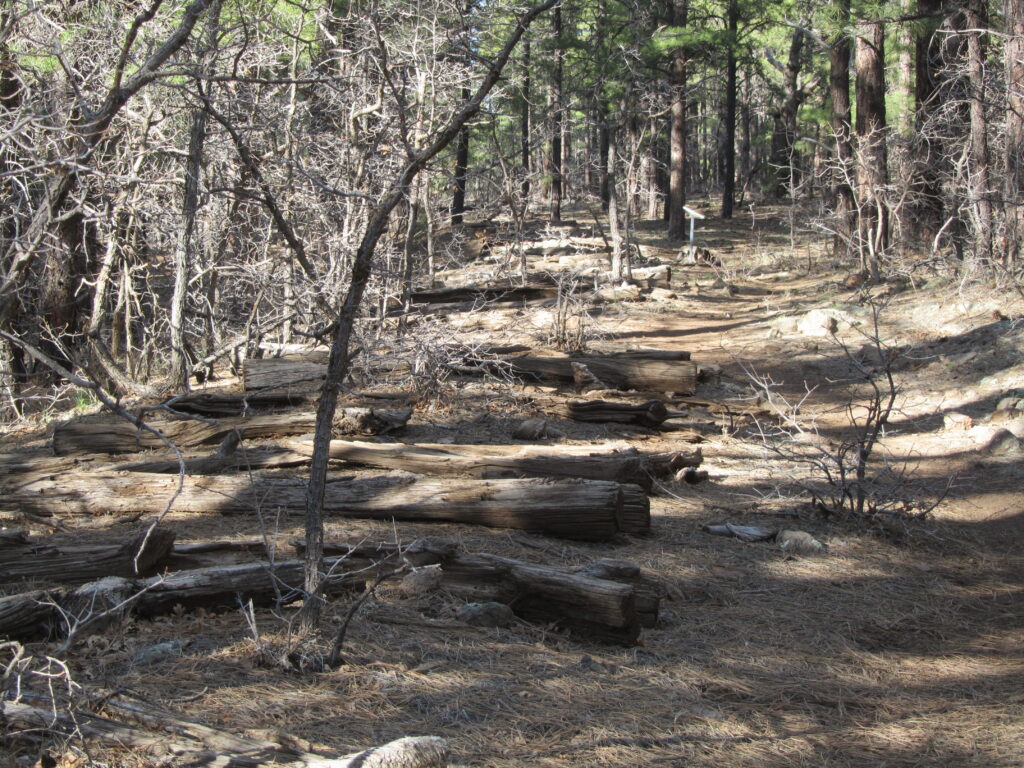 Continued on through the Coconino National Forest on another flat and easy day, forests, meadows, wooded hillsides and one antelope. Followed an old railroad bed for several miles., built in the early 1900’s to carry logs to the mills in Flagstaff and Williams.