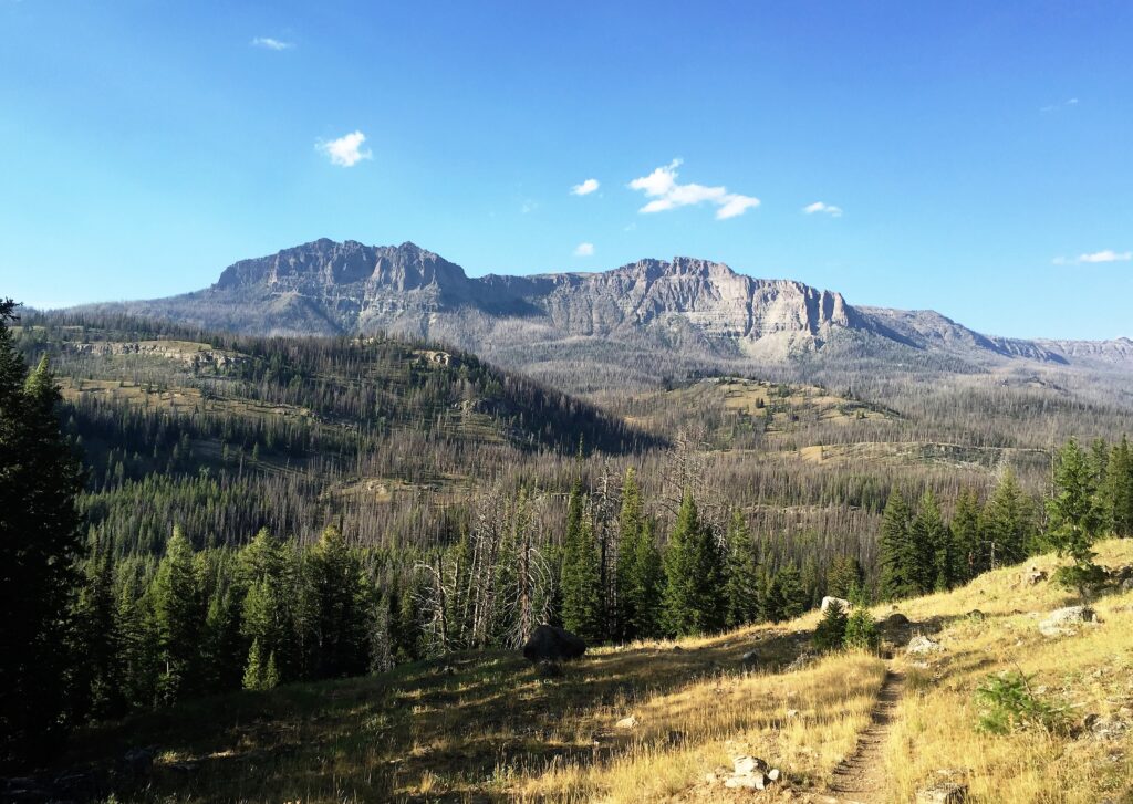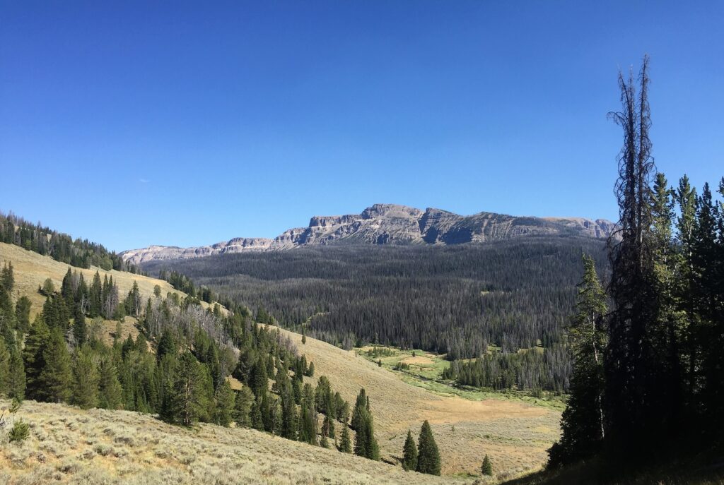 I started climbing after South Buffalo Fork and found a nice site with great views of the Smokehouse Mountains and a nearby tall tree to hang by food bag.