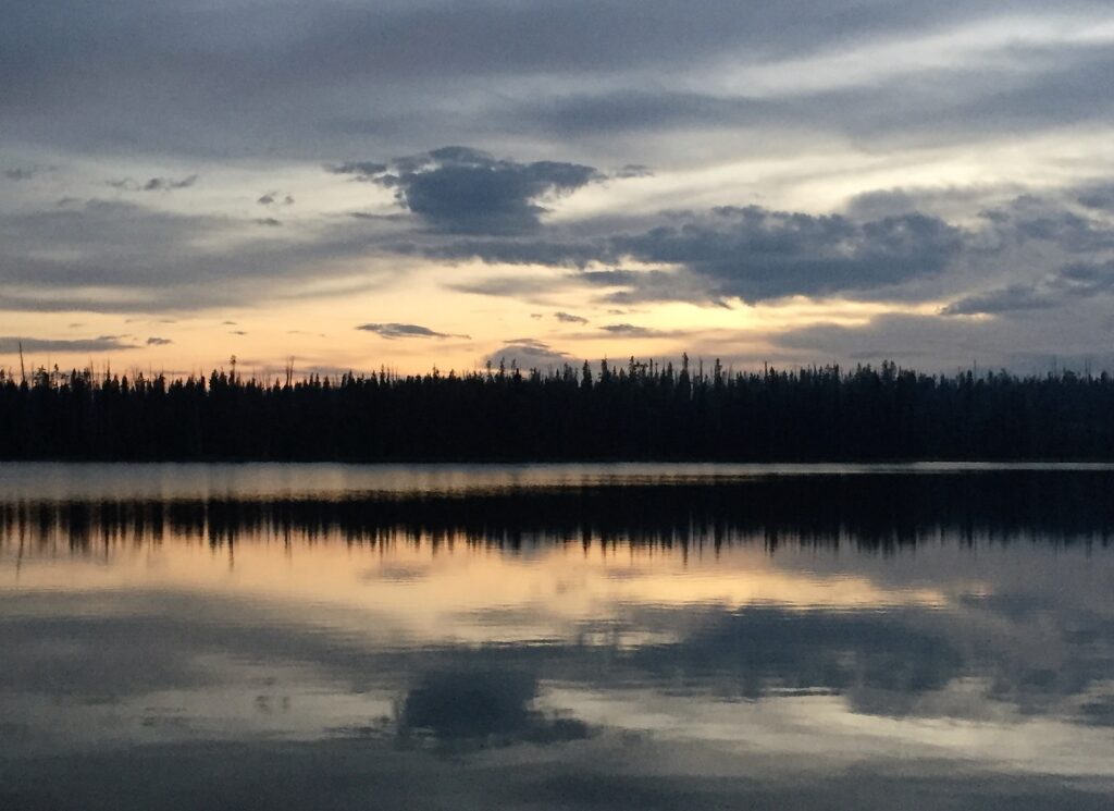 At Summit Lake, I enjoyed a colorful sunset on the lake and a celebratory Mountain Man scotch ale from Great Falls MT. Once again, the only one here tonight.