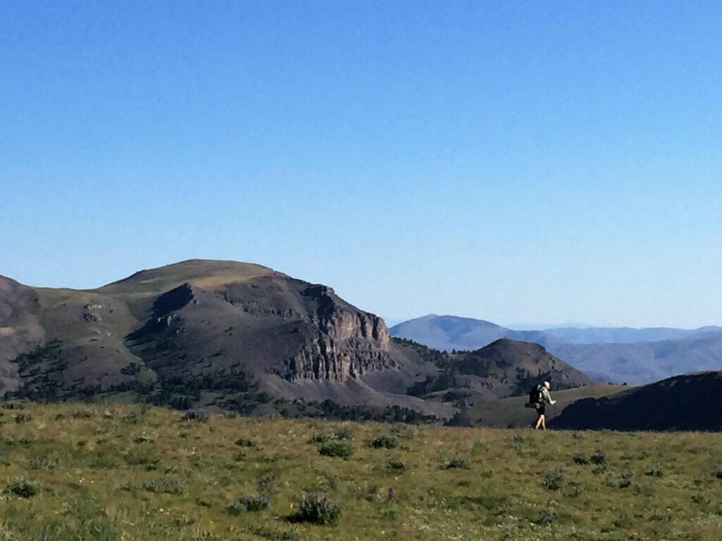Four sizable, uphill pushes today on trails, ATV tracks, dirt roads and bushwhacking between cairns. Beautiful veiws on high points along the ID/MT border.