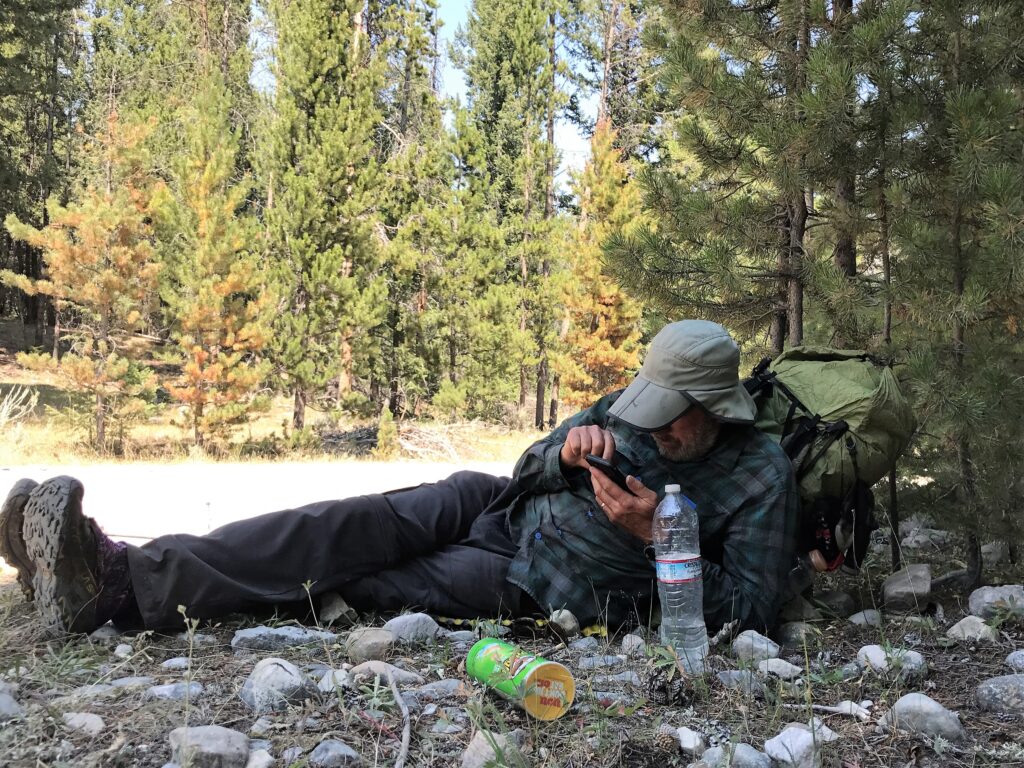 One more climb this morning and down to a new section of trail to the Miner’s Lake Road. We walked four more miles and stopped just past the CG above Miner’s Lake. While sitting there waiting for a car to come by and take us the 14 miles into Jackson MT, a cinnamon bear came up from the lake, crossed the road about 50 ft from us, and disappeared in the trees and tall grass. Sourdough and I both had our phones in our hands but too quick to get a pic.