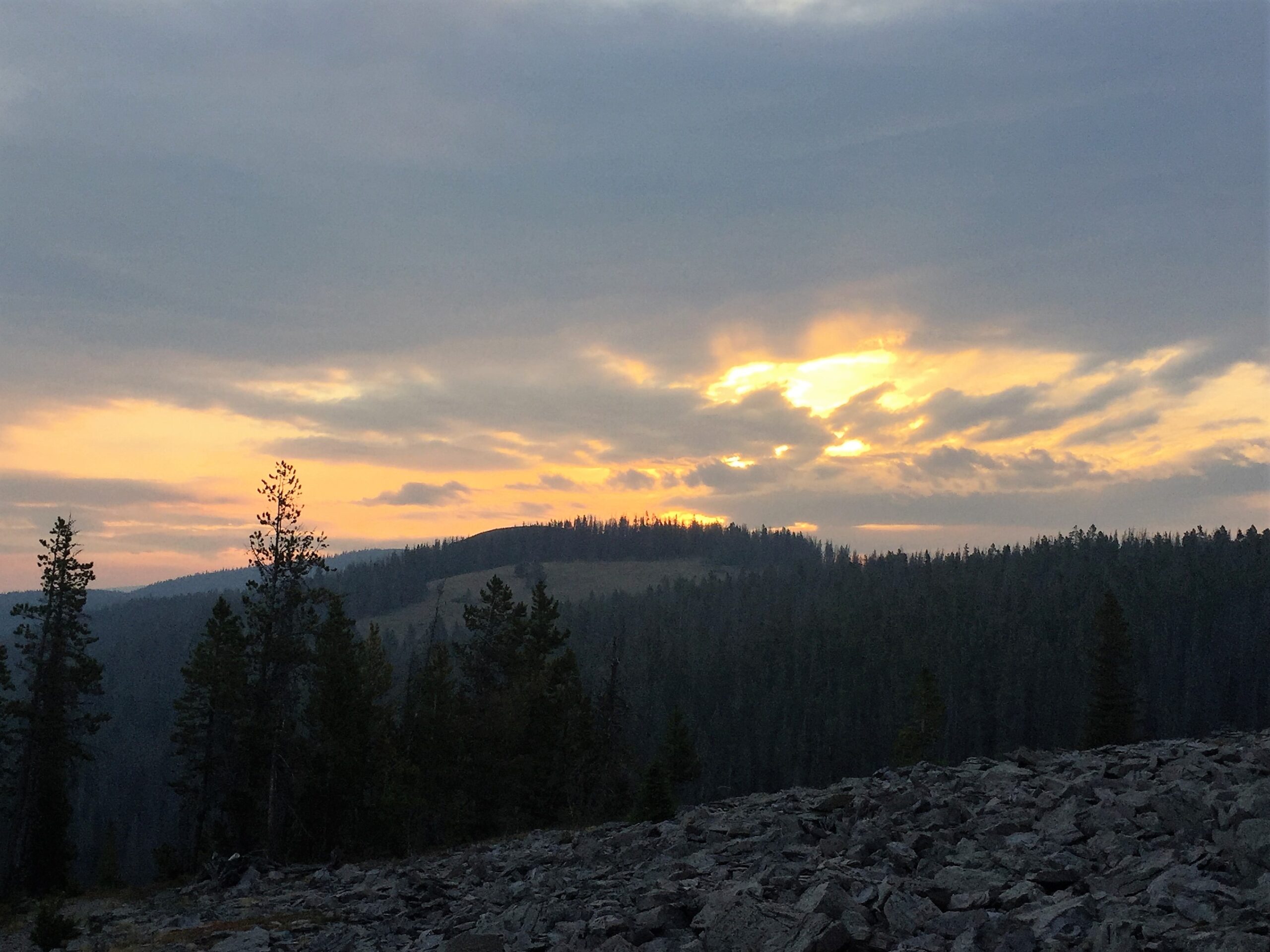 I was all alone in the woods but this morning it smelled like I was in a campground with everyone burning fires. The sun had a hard time making an appearance as well. The solar eclipse may be a non-event in this part of Montana.