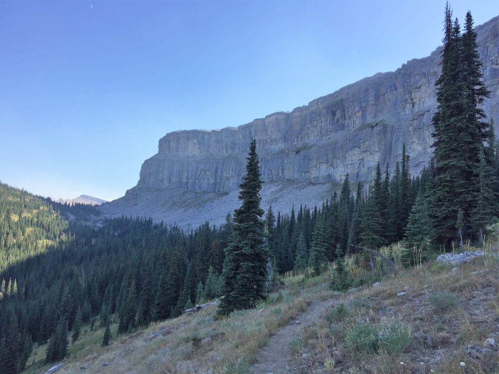The Chinese Wall, on what was a beautifully clear day, was spectacular – a massive, shear rock wall extending for several miles. Much of the trail was near the base of the wall so great views.