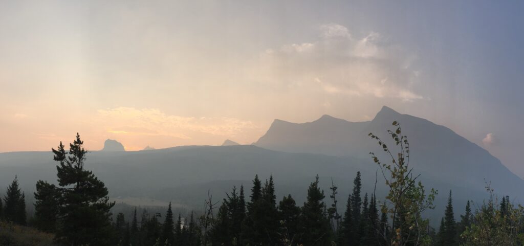 A stroll along the Belly River Valley, then a short climb to Chief Mountain. On my last “Hey bear”, I got an answer from Mrs. Haze coming down the mountain.