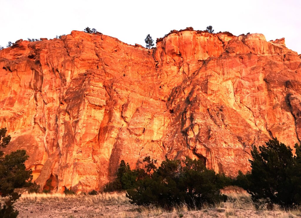 Found a nice camp spot hidden from the highway with good views of the sandstone cliffs and a colorful sunset.