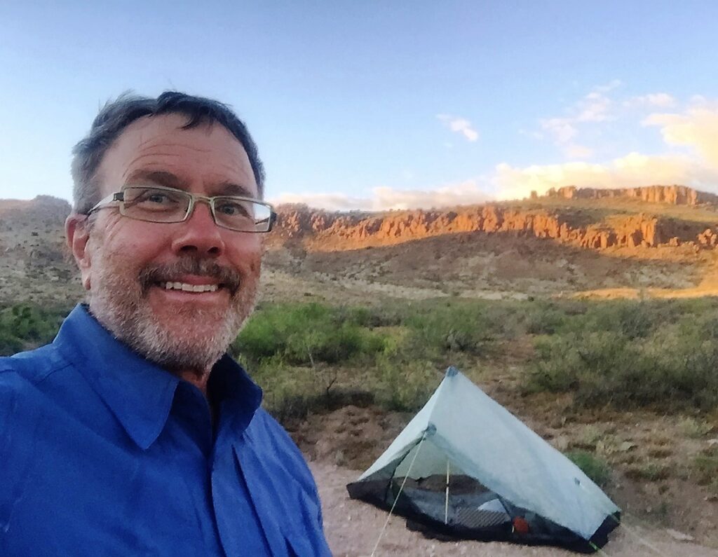 At 3am, I jolted awake again, hearing someone else coming down the wash except this time , the bright light bore into my tent. The person came around the tent, shoved the bright light into my eyes and began shouting questions in loud Spanish. I was still groggy with no glasses on but it wouldn’t have done any good. I was blinded by the light. Not knowing who the hell this was, to each question I repeated, “go away”, “get out of here”, then “goodbye”. After rounds of this nonsense, I started to get out of the tent to better assess what was going on. Or at least, friend or foe? The person finally asked his first question in English, “what’s your name?”. I responded, “what’s yours?”. His comeback, ” I asked you first”. Clearly getting nowhere and not getting a response from me, he finally identified himself as a Border Patrol agent. I appreciate the job BP is doing, but this should have been the first words out of his mouth. He said BP were in the hills trying to chase someone down.