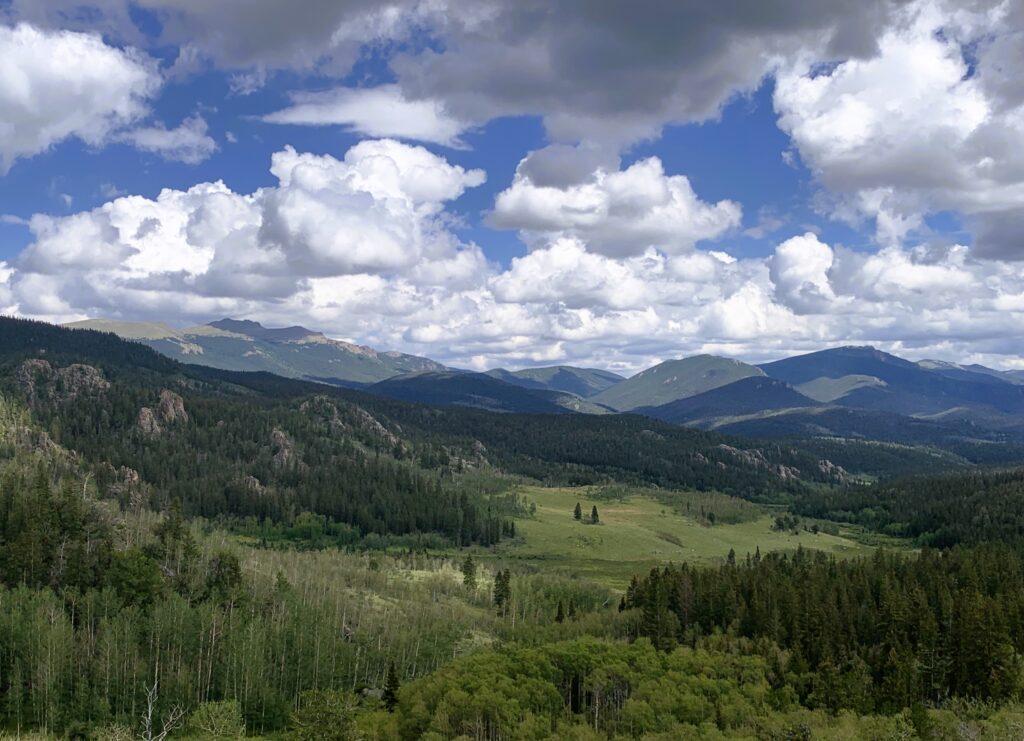 I re-entered the heavily forested Lost Creek Wilderness for several miles to Rock Creek. Had a late lunch and dried out some clothes. Weather still holding, I climbed to a ridge that took me down to Kenosha Pass and a real CG. A picnic table and trash receptacle, real hiker luxury items.