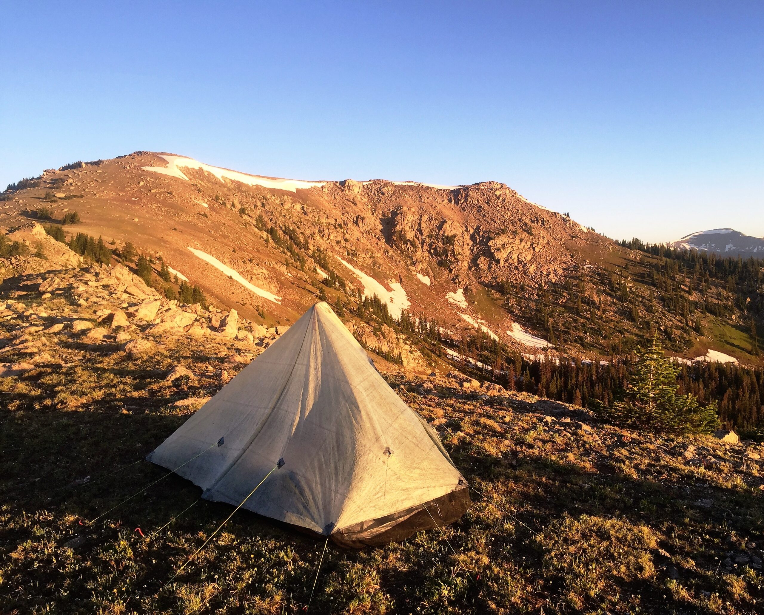 Beautiful view from the tent for sunset and sunrise but the wind kicked up in the evening and battered the tent all night. All that flapping had me digging for my earplugs. As the night wore on, the wind also had a cold bite to it.