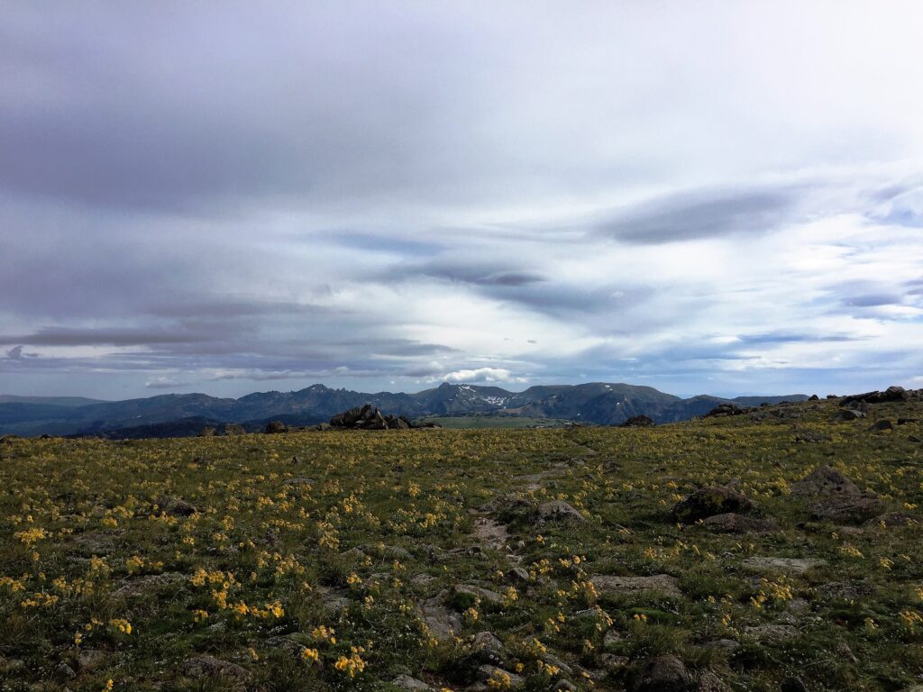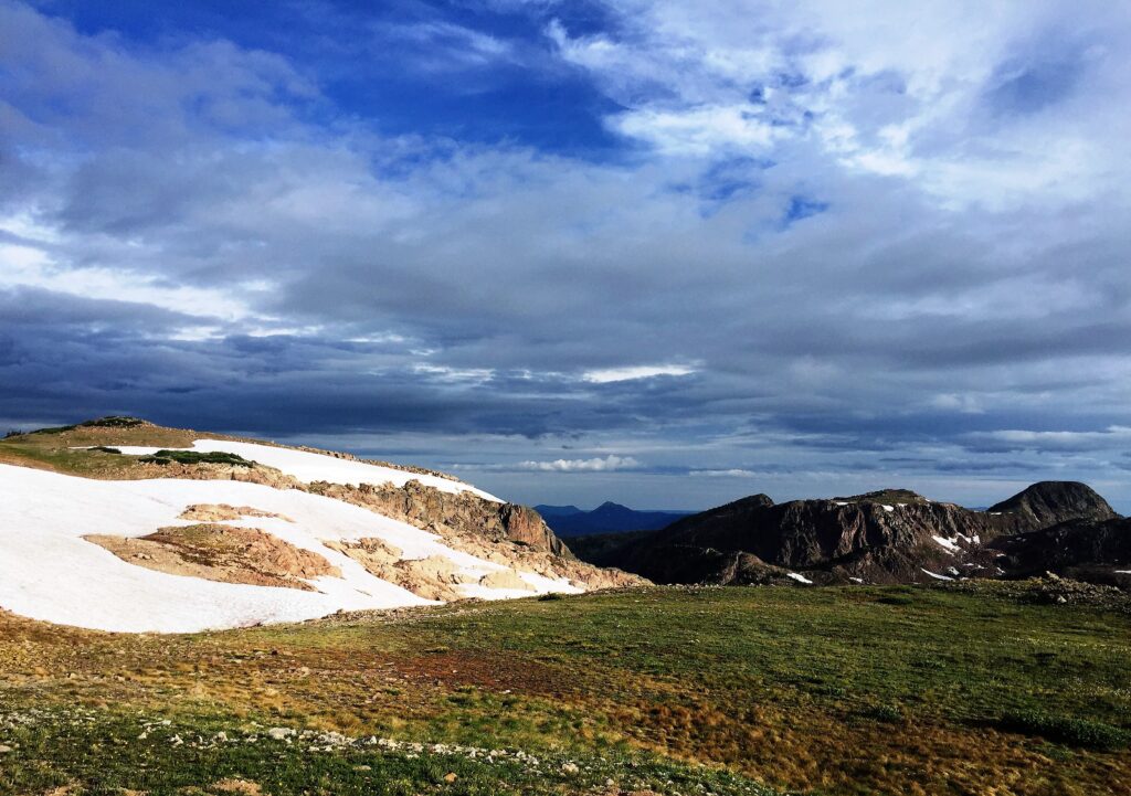 I headed up to Lost Ranger Peak at just under 12,000 ft and crossing perhaps my last shrinking snowfields in Colorado. The ground is still soggy from the melt.