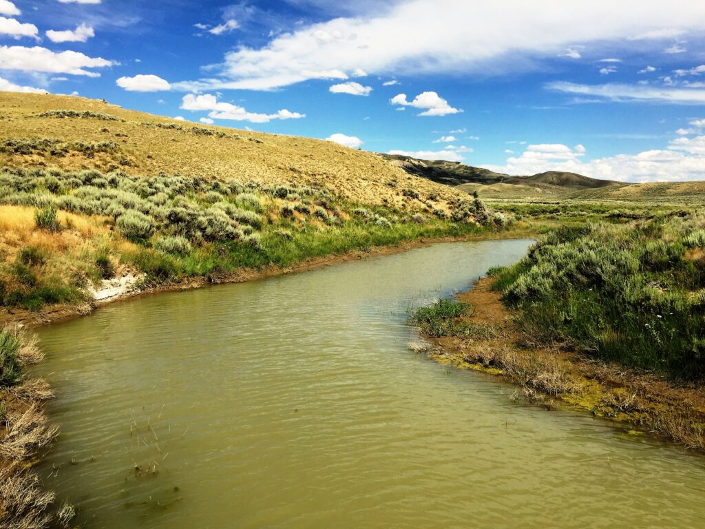 A family driving by gave me a liter of water which just may tide me over for the last stretch to Rawlins – I didn’t really want to wade into the stockpond to access the better looking water in the middle.