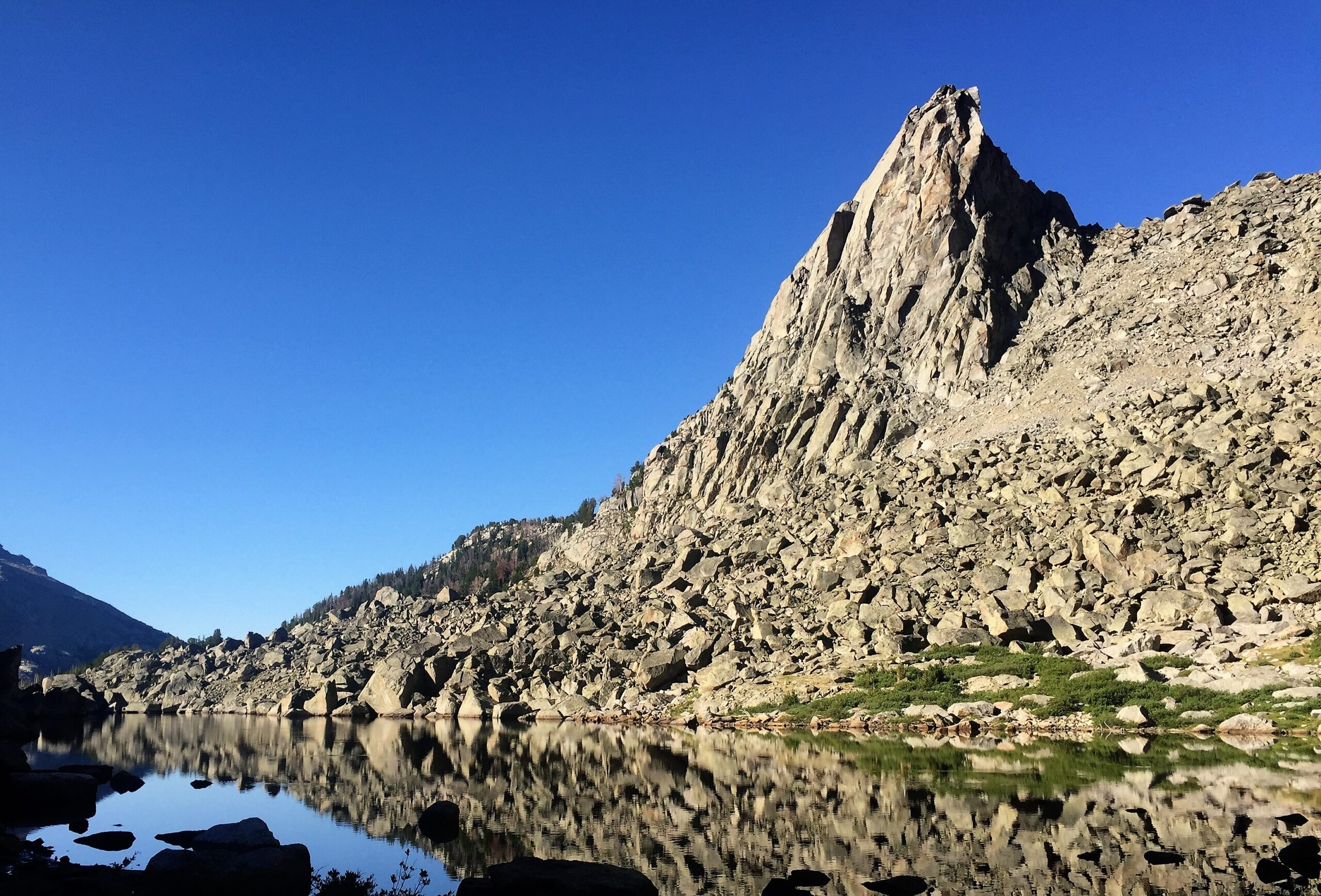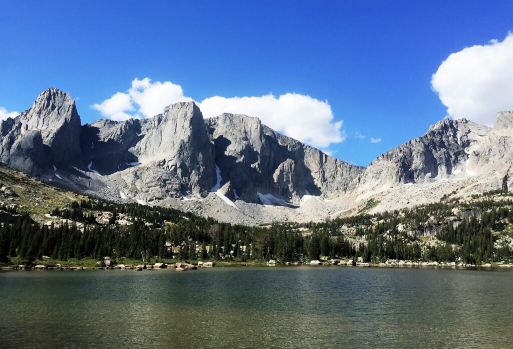 I started uphill immediately, passing by beautiful North Lake and Cirque of Towers including aptly named War Bonnet Peak.