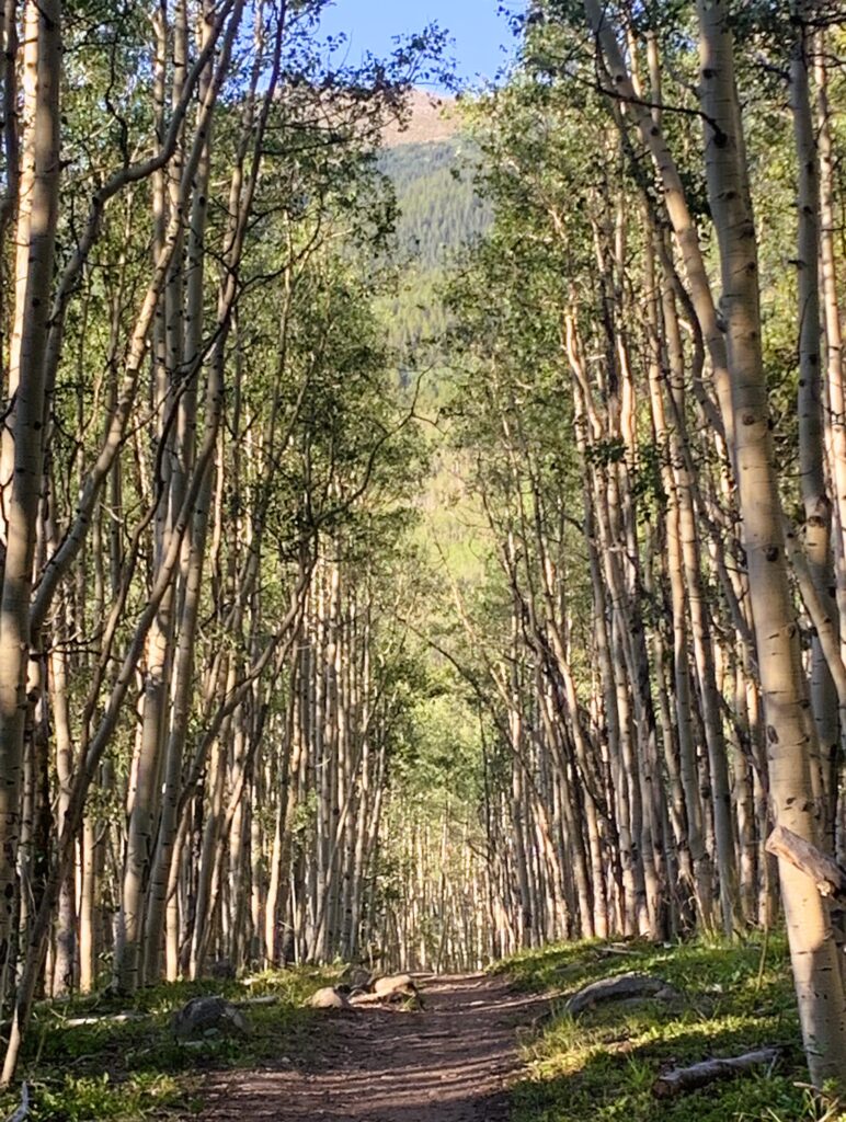 A pretty quick hike down through tall, majestic aspen groves to Hwy 82. Then a short road walk into the small village of Twin Lakes.