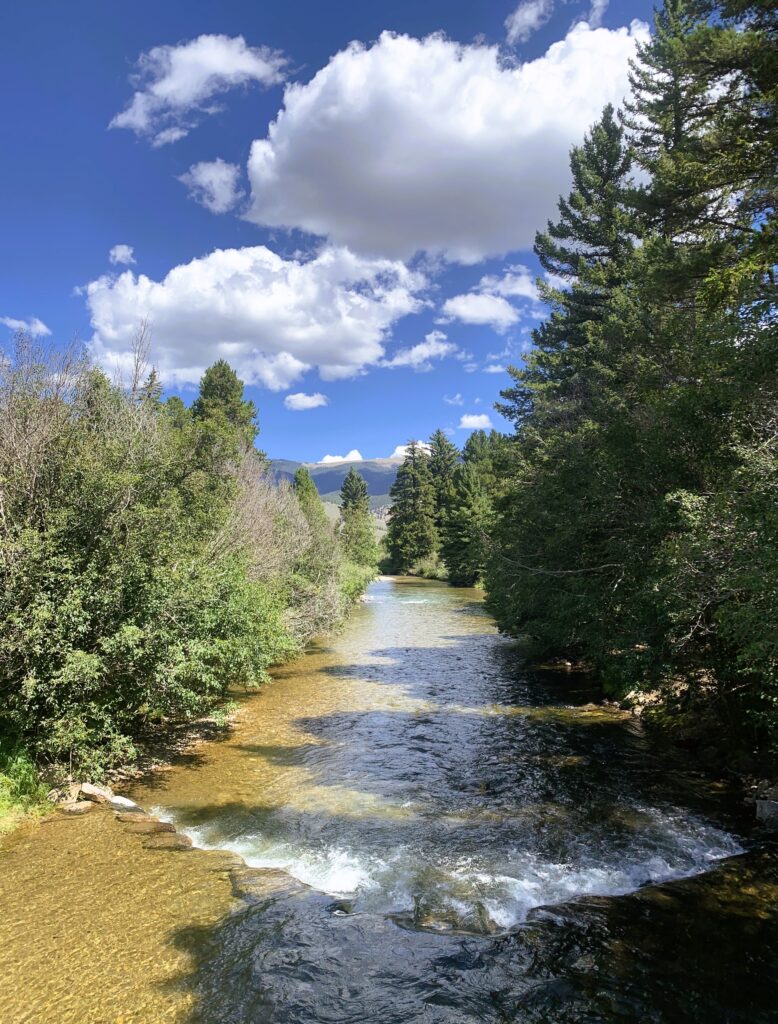 Up and over some forested ridges in the San Isabel NF and dropped down to Clear Creek. The creek was flowing out of a reservoir upstream. I crossed the foot bridge just past the CG, got water and had lunch. I watched a little boy catch his first fish from the bridge. It was a special moment until two adults with the boy proceeded to beat the poor fish repeatedly with a rock. A bit of an overkill.