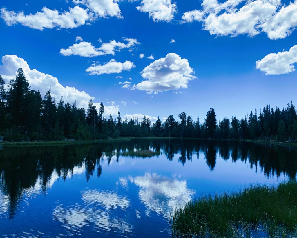 I crossed Middle Cottonwood Creek and headed downstream then up and along the edge of Rainbow Lake. A small pond just off the trail was occupied by a large bull moose wading around and having dinner. He kept an eye on me but didn’t seem too concerned.