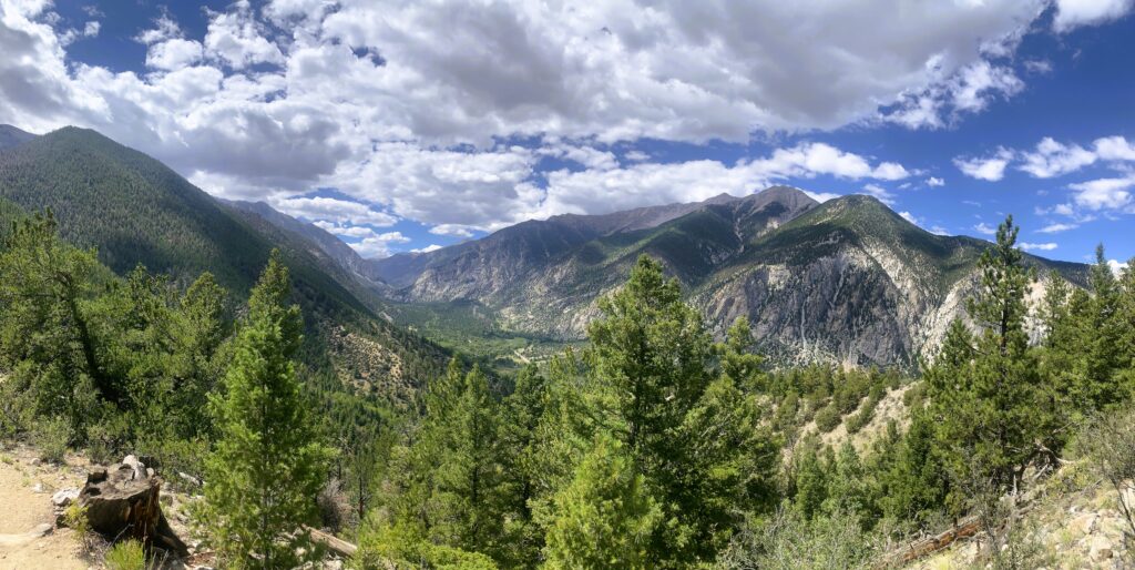 I climbed out of the Cottonwood Creek drainage and continued south on the east flank of Mt Princeton. Walked through the aspen and ponderosa pine forest for about seven miles. I finally reached a road that descended into the Chalk Creek drainage and the Princeton Hot Springs Resort.