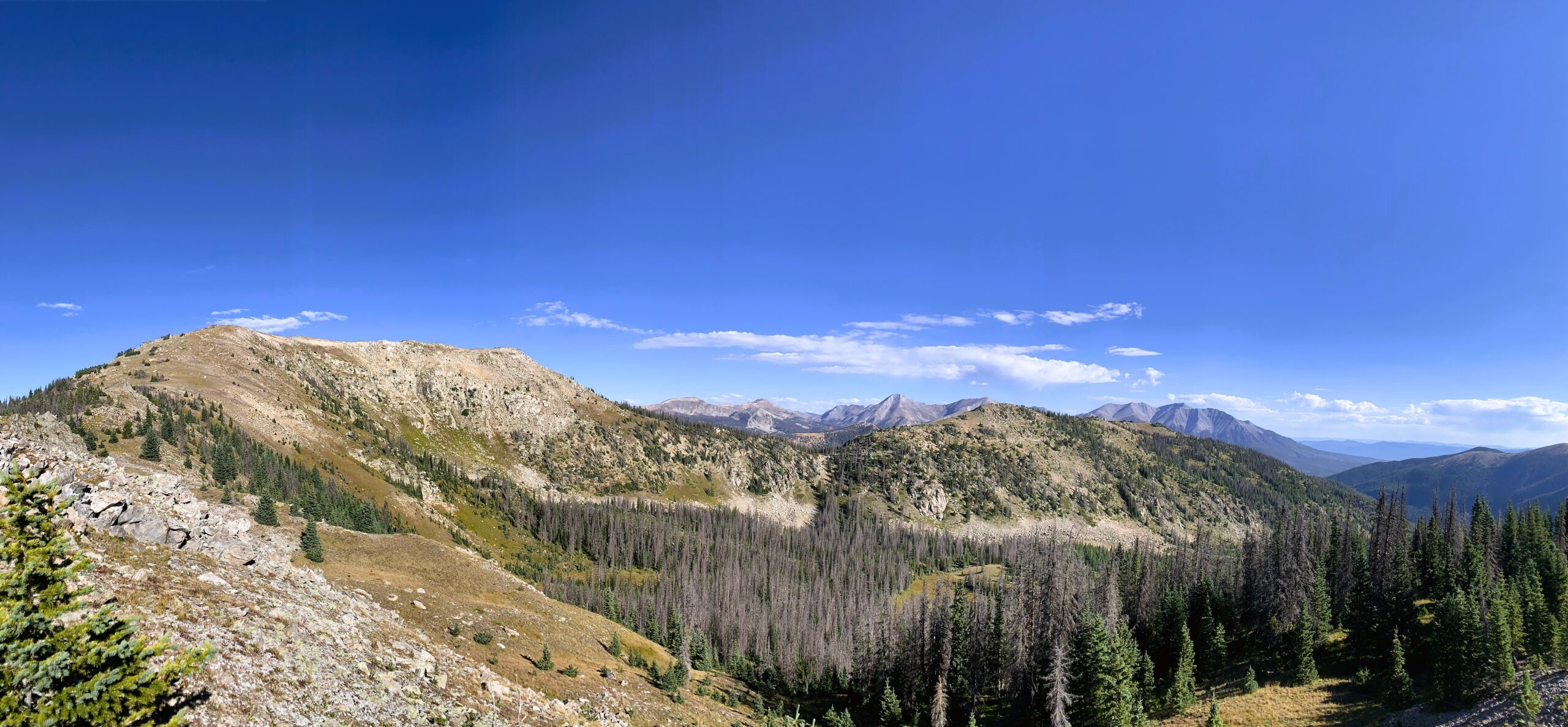 I dropped down to Marshall Pass. got water and had lunch. A combination of trail and dirt roads got me back over 11,000 ft elevation. At my next water refill at a small stream, I was joined by a family of eight grouse. They pecked around making little grouse noises and didn’t seem bothered by me as long as I didn’t move.