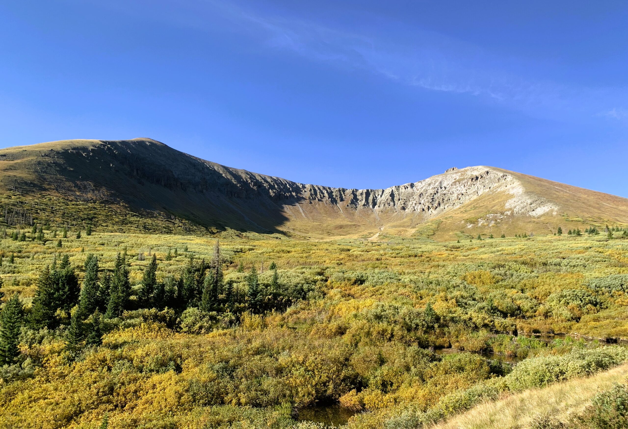 We eventually left the Cochetopa headwaters after meeting two hunters with bighorn tags. We then completed a 2,000′ steep climb to a saddle just below San Luis Peak, above treeline at 12,600′. Expansive, stunning views in all directions.