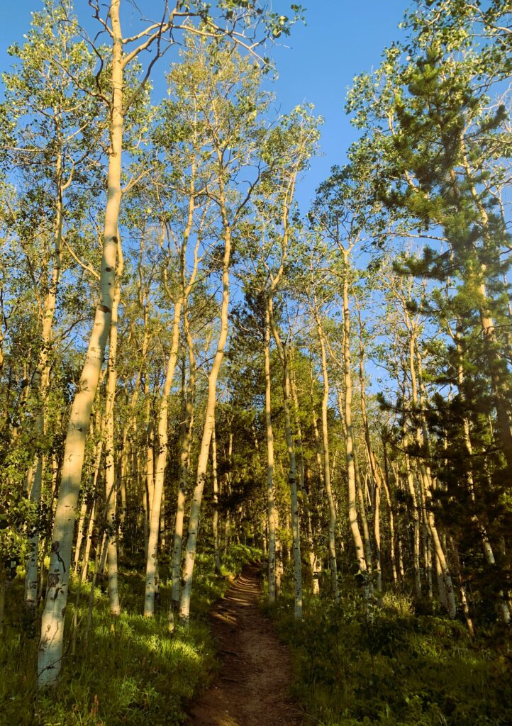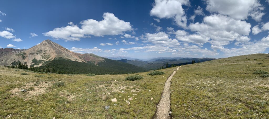 Relatively clear skies this morning on the 2,000 ft climb to Georgia Pass. First through aspen groves, then a pine forest, then predominantly spruce, and finally above treeline at the very top.