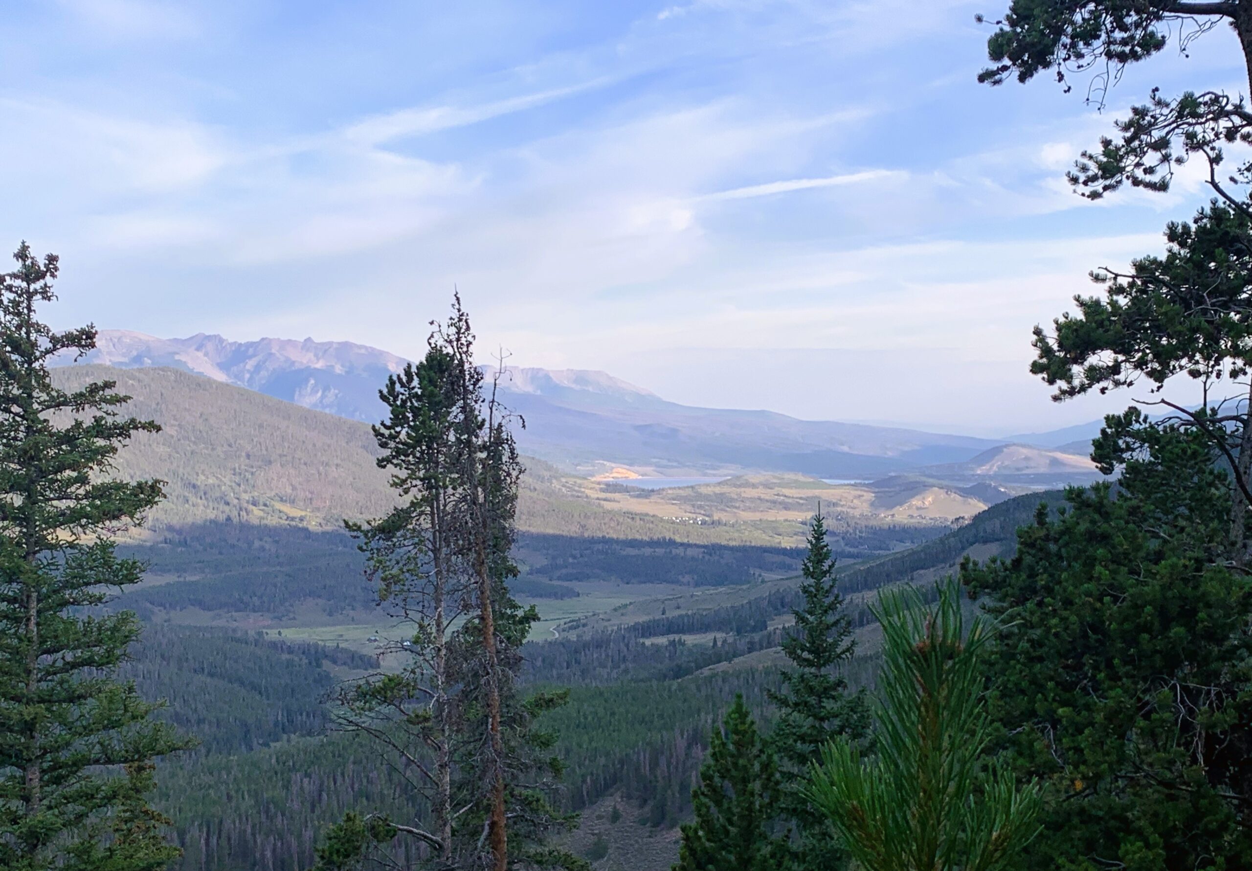 Always an early start for me when going to town so a bit dark initially. But being at the summit crest early means the sunlight comes quicker. Now in the White River National Forest, I hiked mostly downhill along Keystone Gulch, then Horseshoe Gulch. And along the way rewarded with views down to Frisco, Breckenridge and Dillon Reservoir.