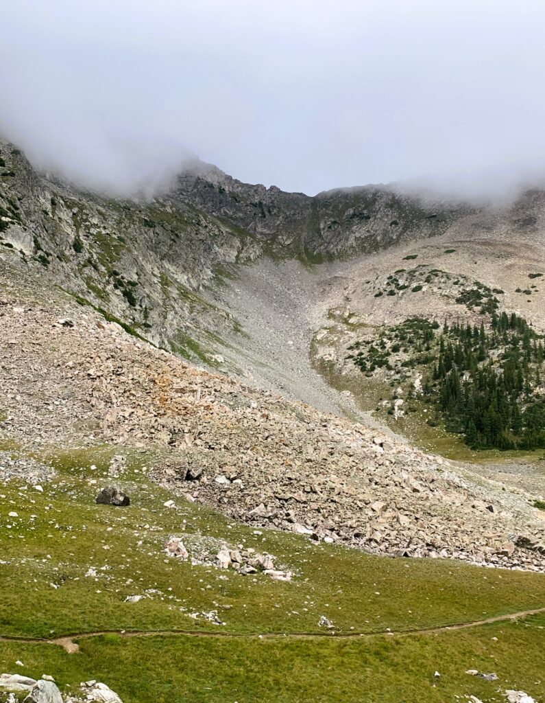 A cloudy, misty, cool morning – just perfect for a 3,000 ft climb to 12,500 ft elevation. A bit steep in parts but overall a good trail. By the time I got to the top I was in the clouds with very limited visibility so no real photo ops.
