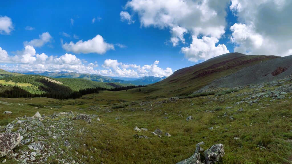 Above treeline, the trail then followed Elk Ridge around to Kokomo Pass, also at 12,000 ft elevation. The marmots were out in full force.