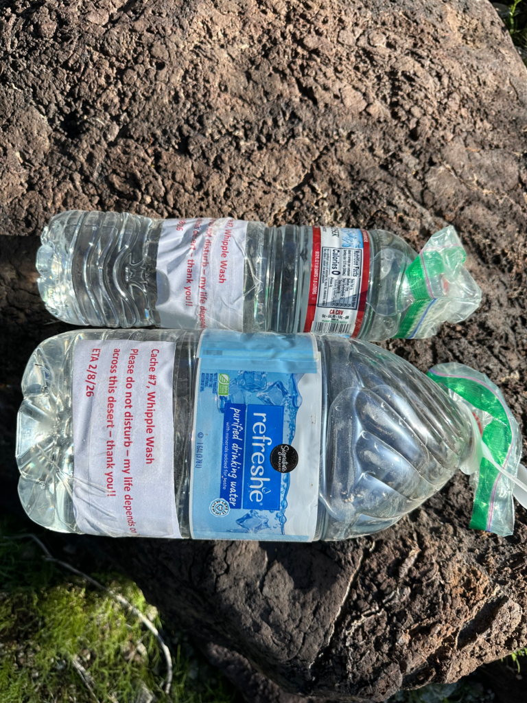 Caching on the DWTH is probably not completely necessary but 1) I live in Arizona so the route is more easily accessible, 2) trail towns for resupply are few and far between, 3) a lighter pack is most appreciated, and 4) the extra safety measure is peace of mind for sometimes unpredictable water quality and quantity in the desert.