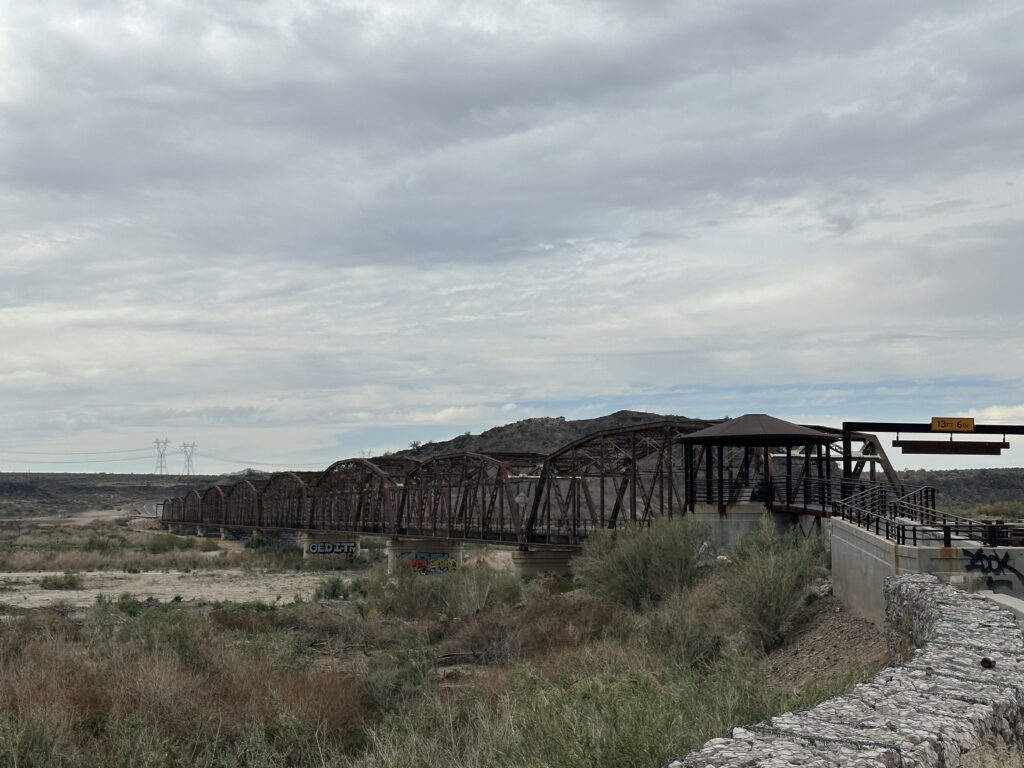 The old highway and canal led me to the historic Gillespie Dam Bridge, a 1927 vintage, 1,660’ steel through-truss bridge spanning the Gila River. Just upstream was the partially collapsed Gillespie Dam, still holding enough water for fishing and creation of a wetlands area. The dam failed during winter flooding in 1993.